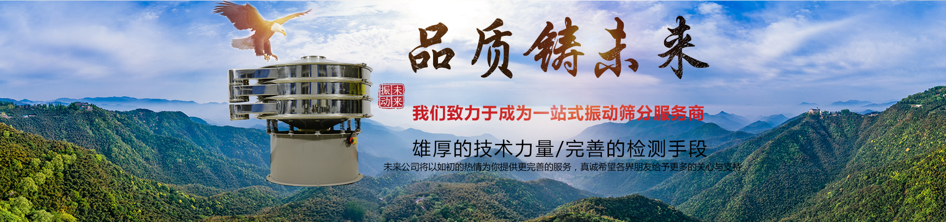 完美品質(zhì)鑄就未來(lái) 新鄉(xiāng)市未來(lái)振動(dòng)設(shè)備有限公司**生產(chǎn)標(biāo)準(zhǔn)多層振動(dòng)篩,陶瓷泥漿專(zhuān)用振動(dòng)篩,面粉專(zhuān)用篩分機(jī),淀粉專(zhuān)用振動(dòng)篩,超聲波振動(dòng)篩,超靜音振動(dòng)篩等等振動(dòng)篩及其配套用振動(dòng)電機(jī),設(shè)備配件。 未來(lái)公司是生產(chǎn)振動(dòng)篩分設(shè)......